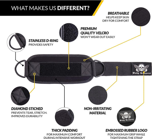 Gym Ankle Cuff Cable Attachment with Adjustable Velcro, Durable Double D-Rings & Cushioned Design for Glute, Leg & Lower Body Exercises, Comfortable Workout Straps & Ankle Cuff