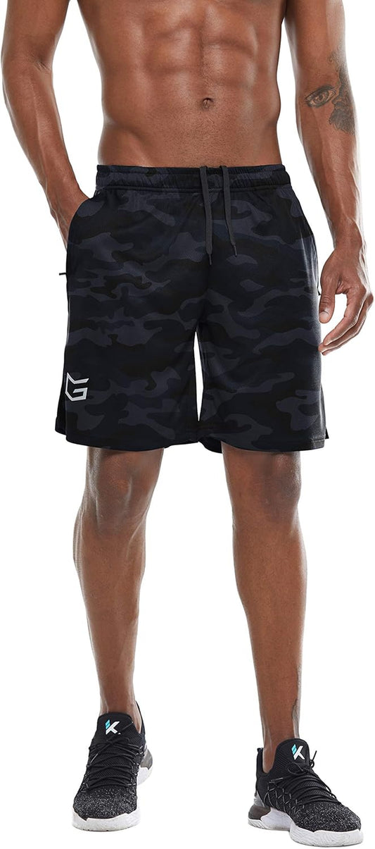 Men'S Athletic Basketball Shorts Loose-Fit Performance Sports Workout Shorts Zipper Pockets