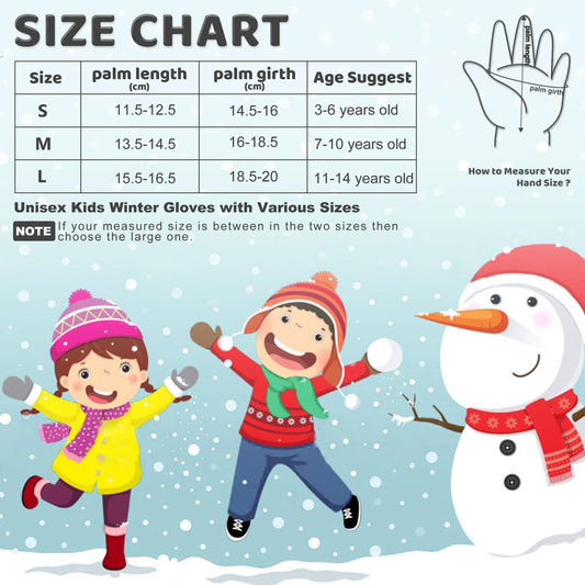 Kids Warm Gloves Winter Waterproof Snow Gloves for Outdoor Sports, Toddler Bulky Ski Gloves for Boys Girls,Black,L